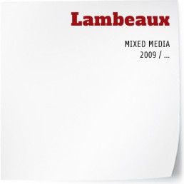 “Lambeaux” est un journal reconstitué à partir d’éléments disparates. Un journal fantasmé, ou l’intime et le collectif se mêlent dans des pages éclatées. Un journal en mouvement où les pages apparaissent et disparaissent aux grés des présentations et où les messages se nichent davantage dans l’espace entre chaque page que dans celles-ci. “Lambeaux” est une mémoire créole. Créole au sens géographique et spirituel. On pourrait dire, pour construire un affreux mot à partir du concept d’Édouard Glissant, une mémoire “créolisationnée”. Une mémoire née “des données du monde absolument hétérogènes les unes par rapport aux autres, se rencontrant dans un lieu et dans un temps donné et qui, à une vitesse foudroyante, fabriquent une nouvelle donnée culturelle complexe et multiple”. Chaque double page (33×22) est clouée, et laisse deviner la page suivante et précédente. Celle-ci sont encadrées dans des boites soit individuellement soit regroupées dans un ensemble, suggérant un chapitrage, dans la narration globale de la série. Lambeaux est actuellement constitué d’une cinquantaine de pages.